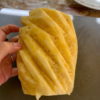 Here's how I cut a pineapple with minimal waste, grill it, and make a quick salsa for chicken tacos with a goat cheese sour cream sauce.
