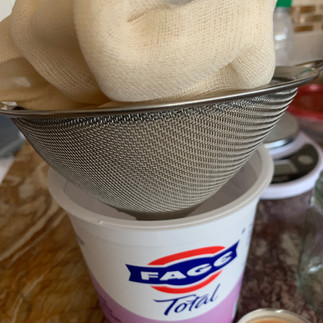 1) To extract whey from yogurt, strain some plain yogurt over a fine mesh sieve lined with cheesecloth and let it sit overnight. If you scoop out your yogurt so that you create a little bit of a well, the whey will pool up and that part will be easy to filter.